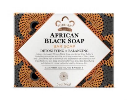 • الصابون الأسود الأفريقي: ينظف البشرة وينقيها ، مما يساعد على تقليل ظهور الشوائب والبثور. كما أن لها خصائص مضادة للالتهابات تساعد على تهدئة وتهدئة البشرة المتهيجة.